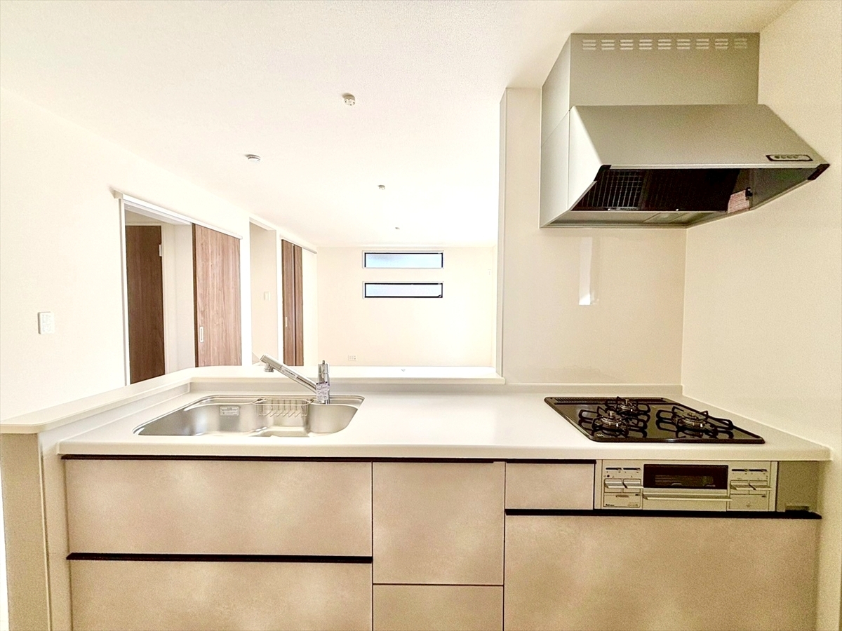 オープンなカフェスタイルキッチンはご夫婦で、お子様と一緒に料理も楽しそう!毎日の家事をちょっとラクにする食洗機付!■府中市白糸台3 新築一戸建て■