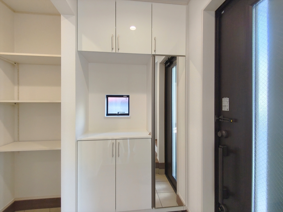 玄関は清潔感のある空間にしたいもの。ご家族が多いご家庭にはとても便利なシューズ・イン・クローゼット付きです。 ■小平市小川町1 新築一戸建て■