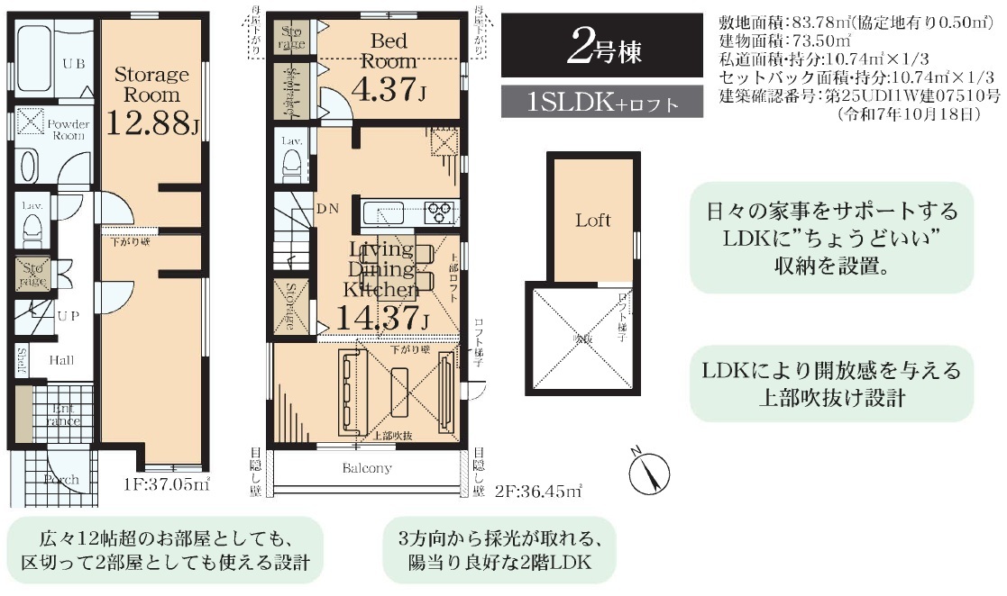 | 間取 | 1SLDK+ロフト (LDK14.37帖、洋室4.37帖、S12.88帖) | ||