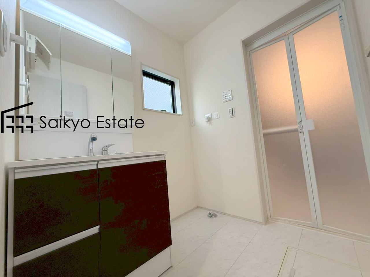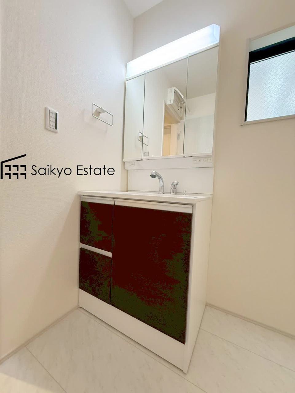 三面鏡付きの洗面化粧台を完備。収納スペースも十分ございますので、ドライヤーなどすっきりと片付きます♪
