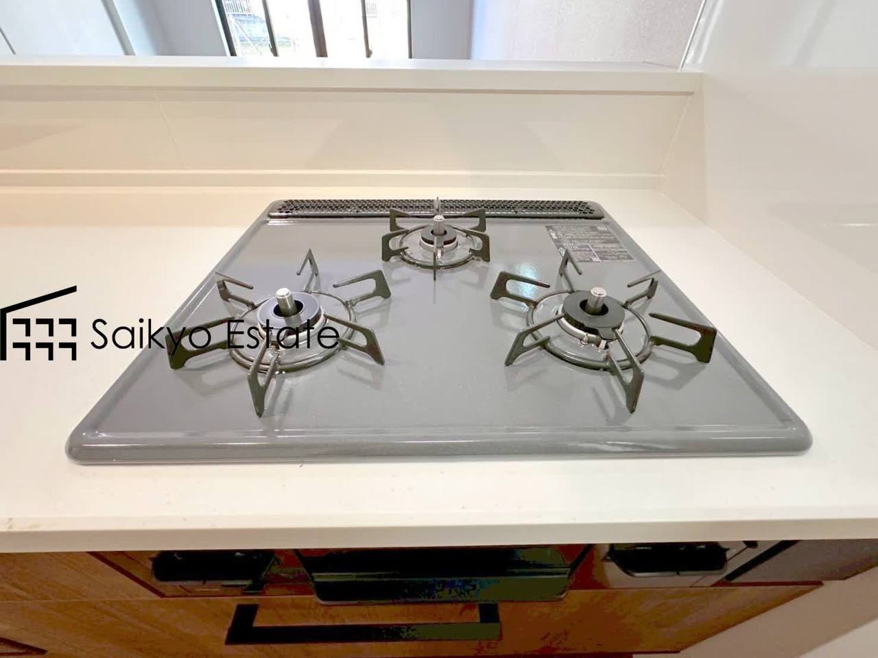 「3口ガスコンロシステム」はたくさんの料理が同時に作れて便利な上、凹凸が少ないフラットトップなのでお掃除も楽々です。