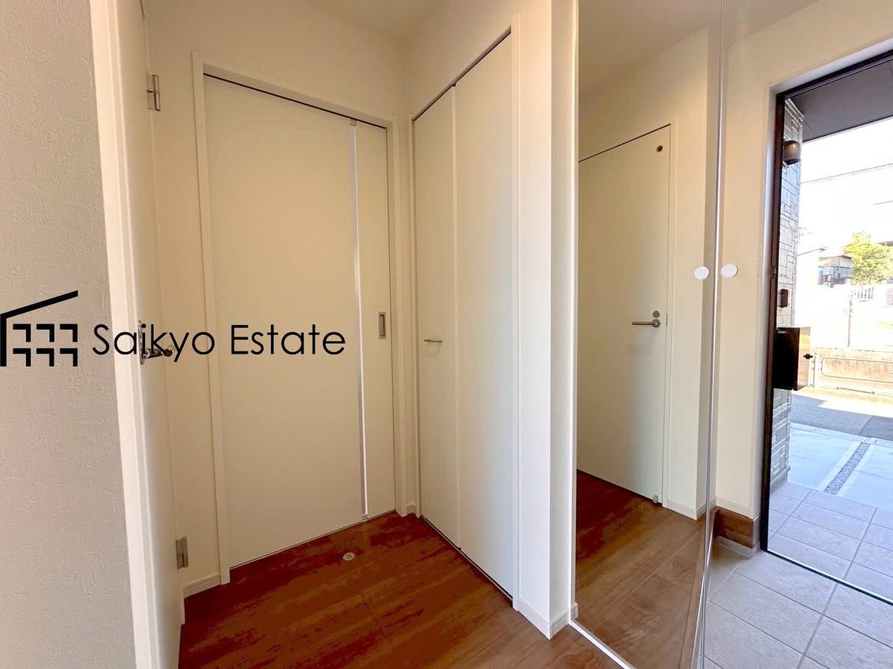 玄関には収納力に優れたシューズボックスがございますので、ご家族みんなの靴が十分入ります!全身を映せる姿見でお出かけ前の身だしなみのチェックもバッチリです!