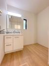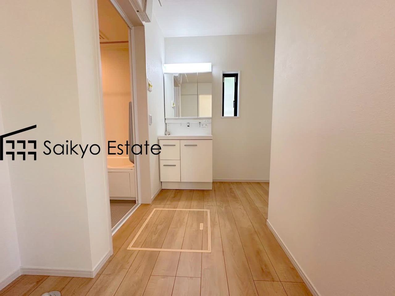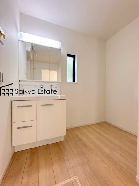 洗面脱衣室は広々とした空間です。棚や収納を置いてリネン庫としてもお使いいただけます。