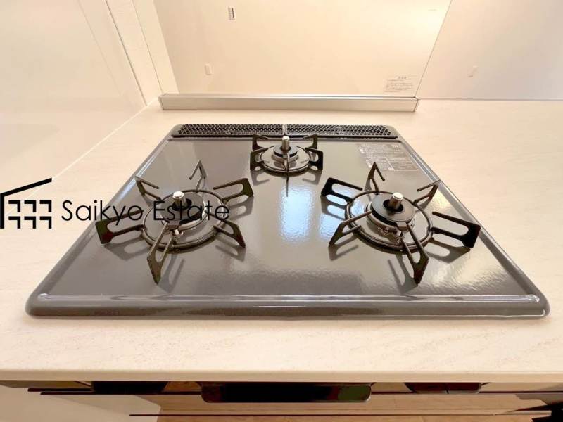 「3口ガスコンロシステム」はたくさんの料理が同時に作れて便利な上、凹凸が少ないフラットトップなのでお掃除も楽々です。