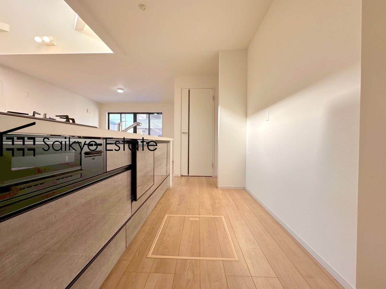 キッチンスペースは冷蔵庫や食器棚などを置くスペースが十分に確保されております。オシャレなカップボードを置きたくなりますね♪