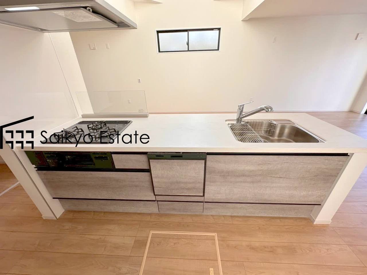 リビングにいる家族とコミュニケーションをとりながら作業が出来る人気のカウンターキッチン。お子様がリビングにいても目が届くので安心です。