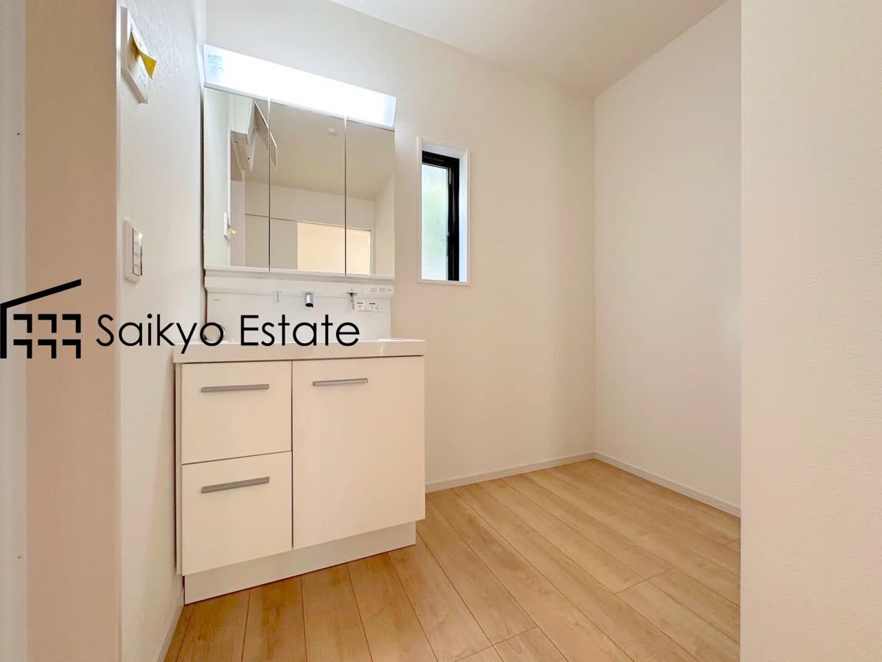 三面鏡付きの洗面化粧台を完備。収納スペースも十分ございますので、ドライヤーなどすっきりと片付きます♪