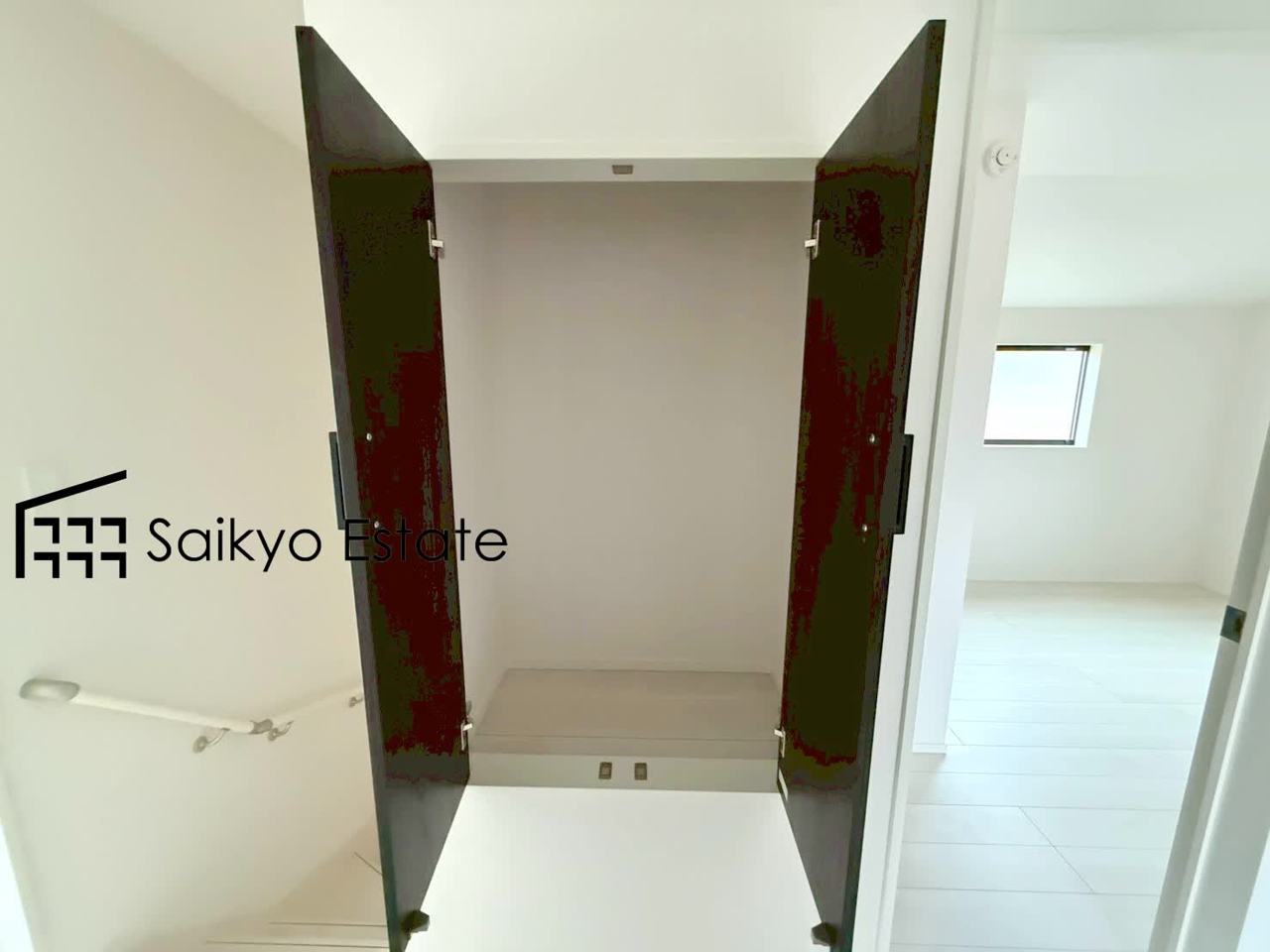 2階ホール部分には階段上を利用した収納スペースがございます。日用品や使用頻度の低い物などの収納として使える便利な空間です。