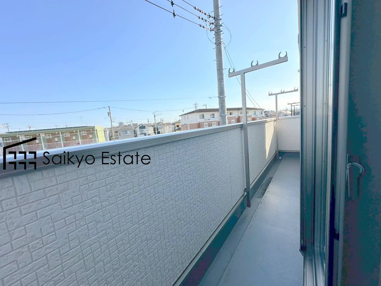 2部屋から出入りが出来る続きバルコニーは家事動線が良く、沢山の洗濯物やお布団がいっぺんに干せます!南向きで陽当たりも良好です♪