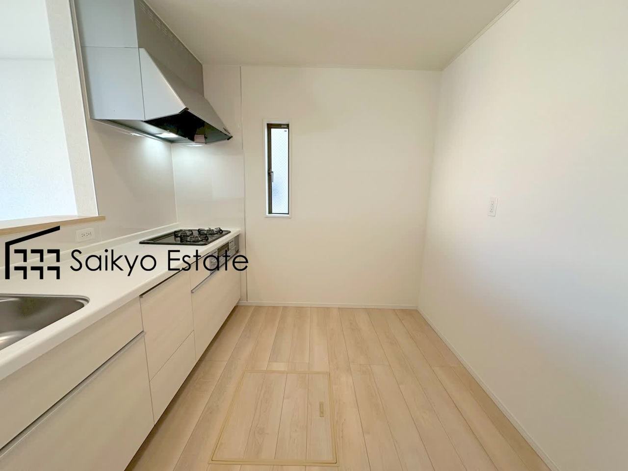 キッチンスペースは冷蔵庫や食器棚などを置くスペースが十分に確保されております。オシャレなカップボードを置きたくなりますね♪