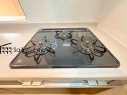 「3口ガスコンロシステム」はたくさんの料理が同時に作れて便利な上、凹凸が少ないフラットトップなのでお掃除も楽々です。