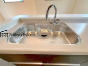 リビングにいる家族とコミュニケーションをとりながら作業が出来る人気のカウンターキッチン。お子様がリビングにいても目が届くので安心です。