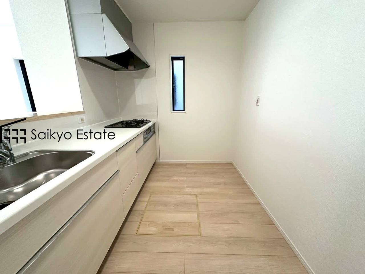 毎日の家事はより快適・便利に!ご家族様との会話を楽しみながら家事ができる対面キッチン。バックスペースは冷蔵庫やカップボードを配置しても充分な広さがあります。
