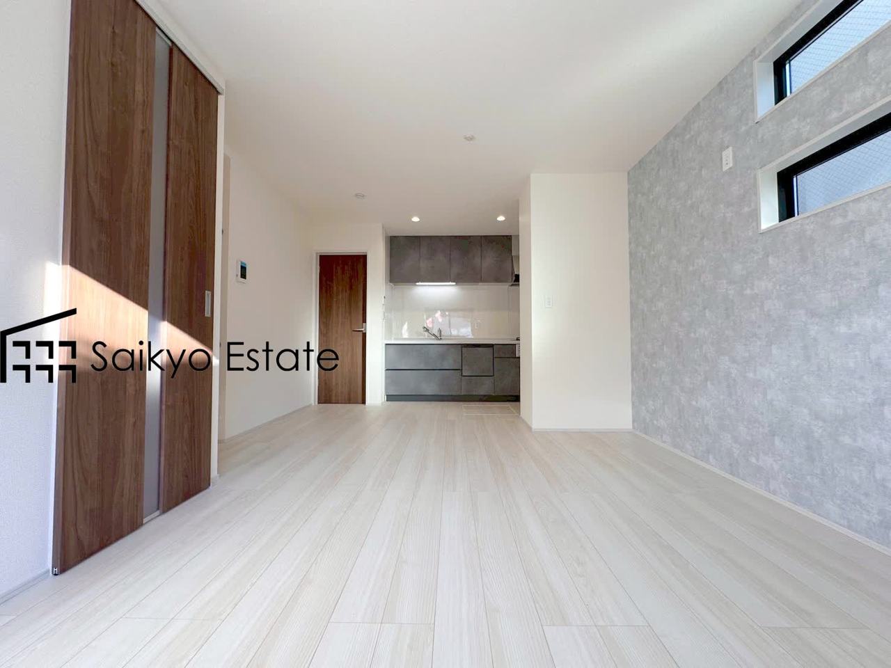 直線的な動線で作業がしやすい壁付けキッチンを採用。空間を広々と活用いただけます。リビングと近いキッチンは、会話をしながら作業ができ、食事の配膳や後片付けも楽々です♪