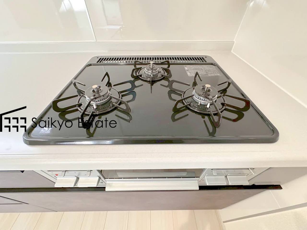 「3口ガスコンロシステム」はたくさんの料理が同時に作れて便利な上、凹凸が少ないフラットトップなのでお掃除も楽々です。
