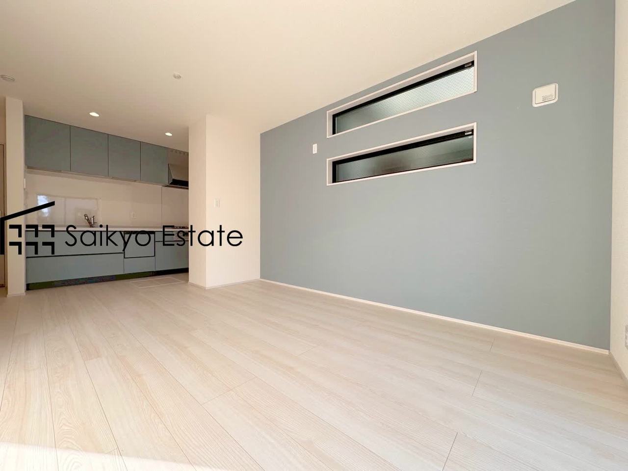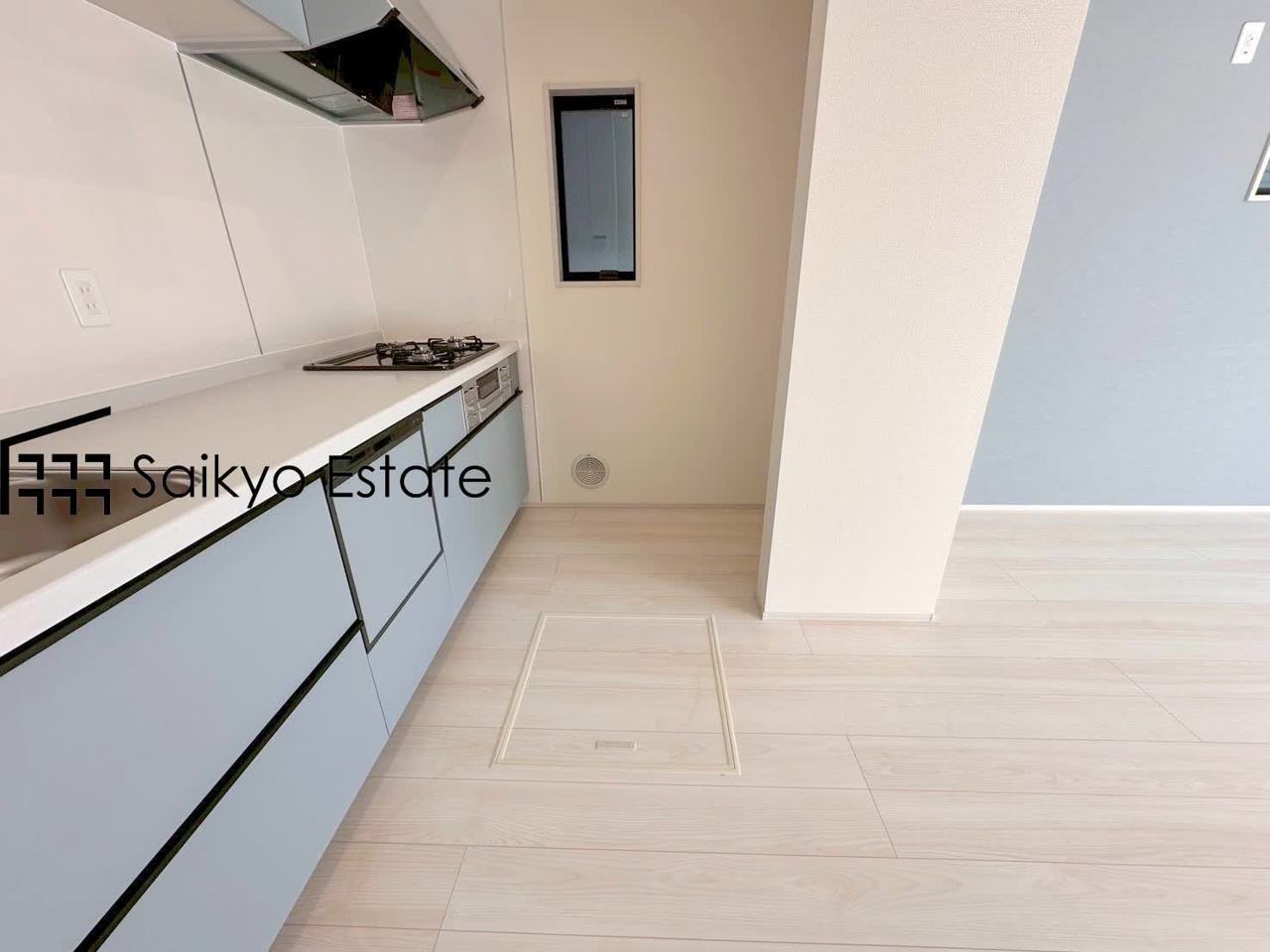 直線的な動線で作業がしやすい壁付けキッチンを採用。空間を広々と活用いただけます。リビングと近いキッチンは、会話をしながら作業ができ、食事の配膳や後片付けも楽々です♪