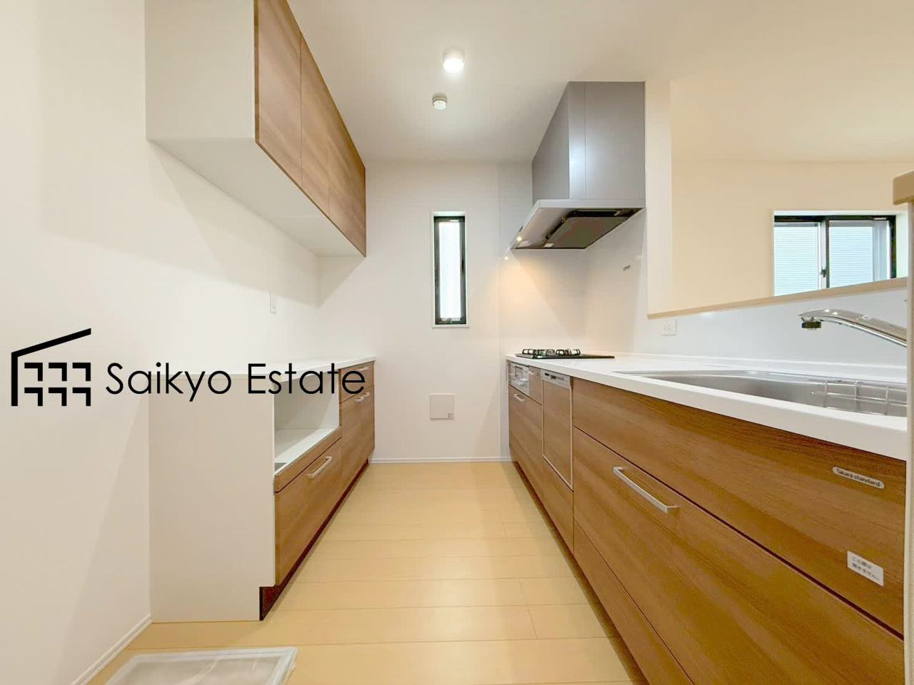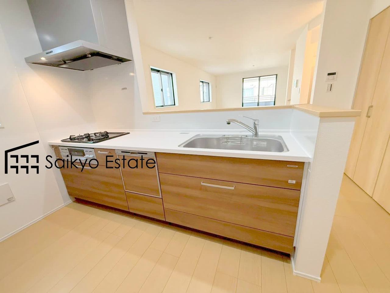 リビングにいる家族とコミュニケーションをとりながら作業が出来る人気のカウンターキッチン。お子様がリビングにいても目が届くので安心です。