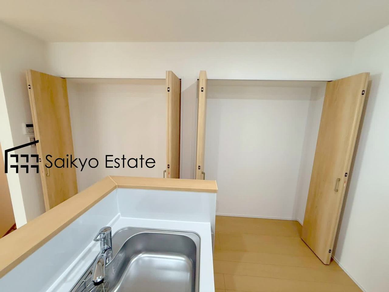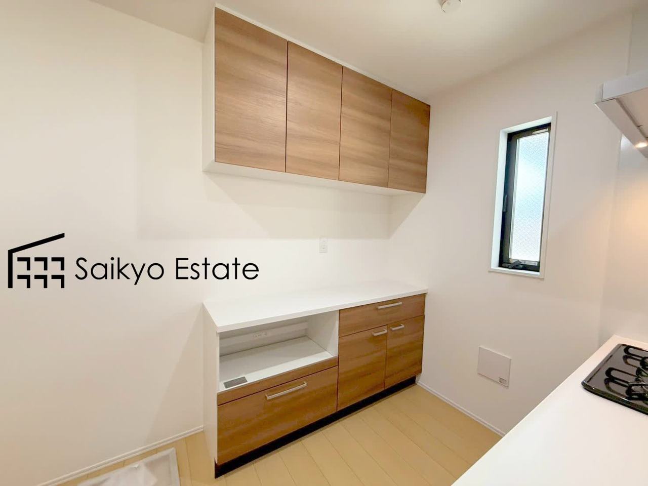 キッチンスペースにはカップボードが設置されておりますので、キッチンはいつもスッキリ♪調理スペースも広く、お料理がはかどりそう!