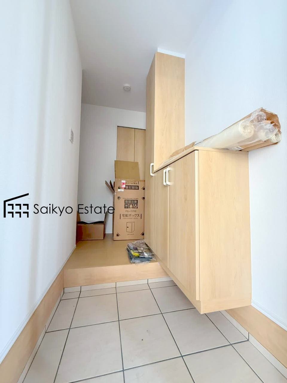 1階、玄関前のホール部分に収納がございますので、日用品や使用頻度の低い物などの収納、備蓄庫としても使えます。