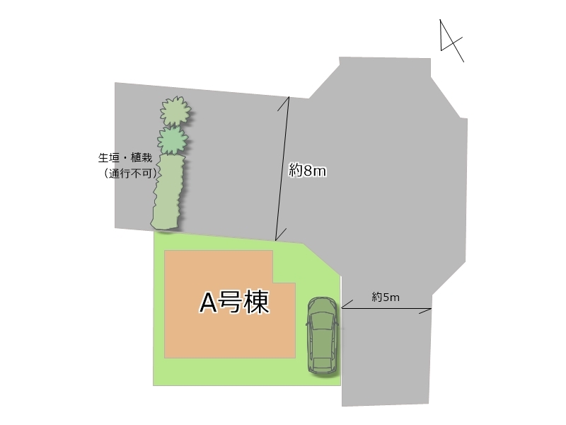 | 権利種類 | 所有権 | 接道 | 東側5M道路に接道 北側8M私道に接道 |