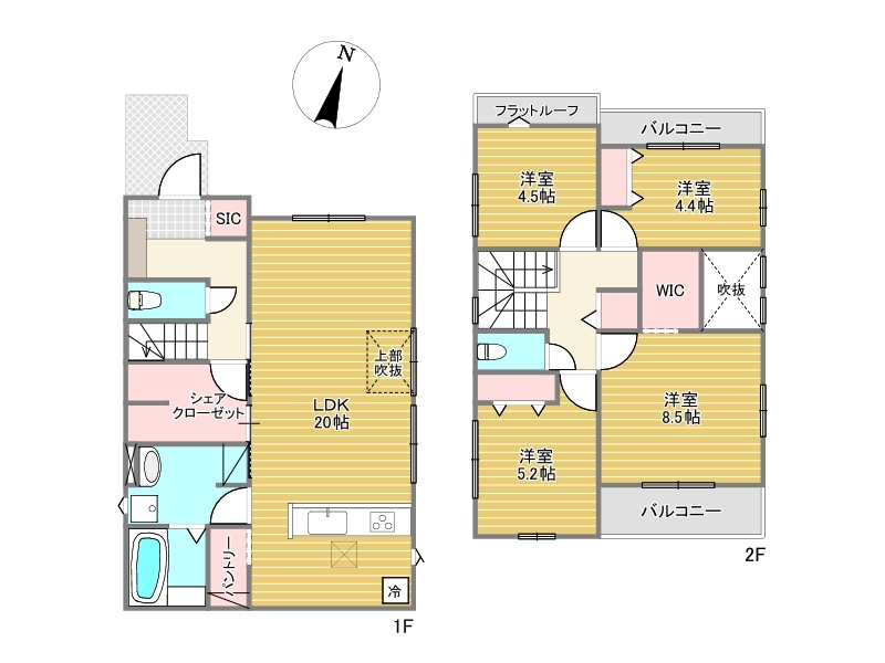 - ※完成予想図はいずれも外構、植栽、外観等実際のものとは多少異なることがあります。