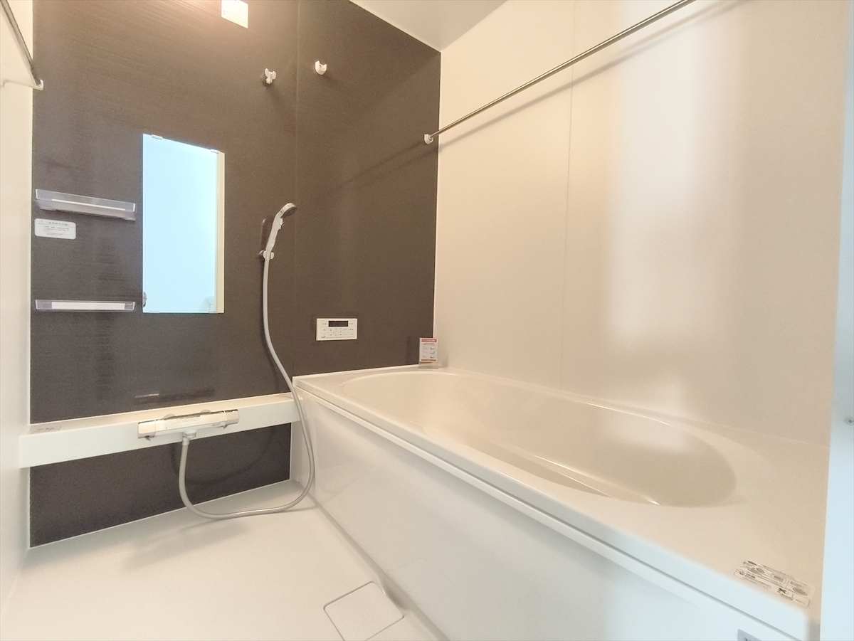 一日の疲れを癒すための心地よい浴室はゆとりあるサイズを採用。浴室乾燥機付き!汚れにくくお手入れしやすい浴室です。■日野市旭が丘1 新築一戸建て■