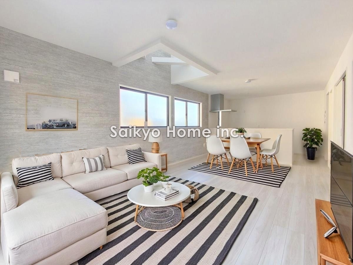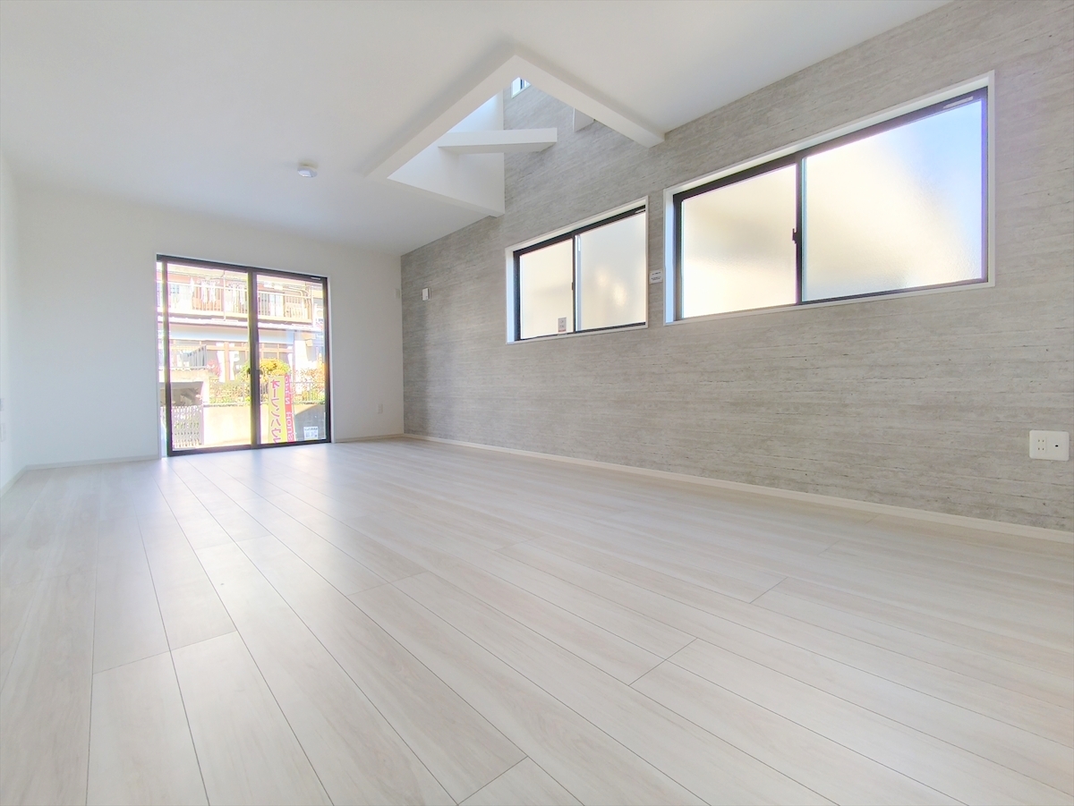 開放的な一部吹抜け+窓の多いデザイン=やわらかな陽光が隅々まで届きます。注文住宅を思わせるようなオシャレな造りの間取り・仕様。※家具等はCG加工しております。■日野市旭が丘1 新築一戸建て■