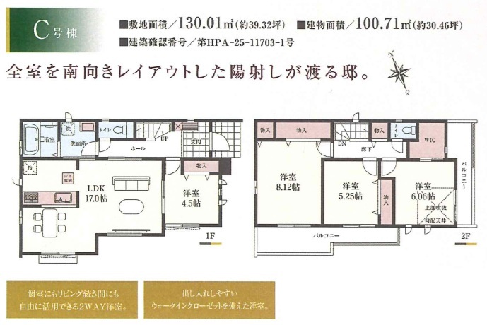 | 間取 | 4LDK (LDK17.0帖、洋室4.5帖、洋室8.12帖、洋室6.06帖、洋室5.25帖) | ||
