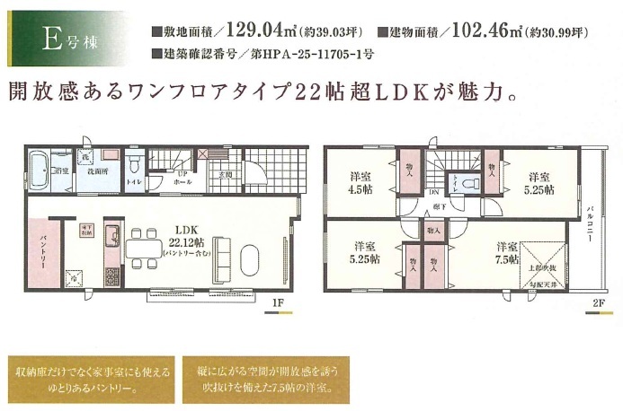 | 間取 | 4LDK (LDK22.12帖、洋室7.5帖、洋室5.25帖、洋室5.25帖、洋室4.5帖) | ||