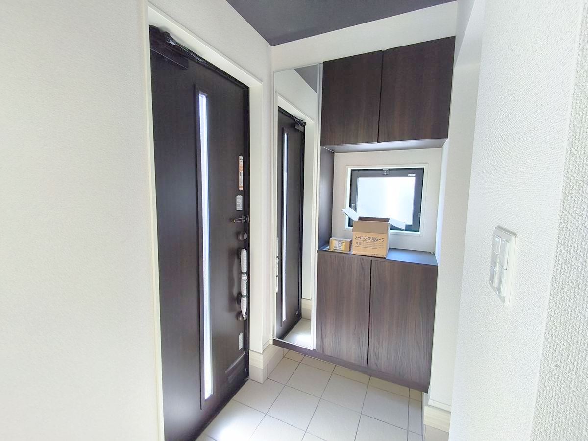 玄関は清潔感のある空間にしたいもの。ご家族が多いご家庭にはとても便利なたっぷり収納できるシューズボックス付きです。 ■府中市新町3 新築一戸建て■