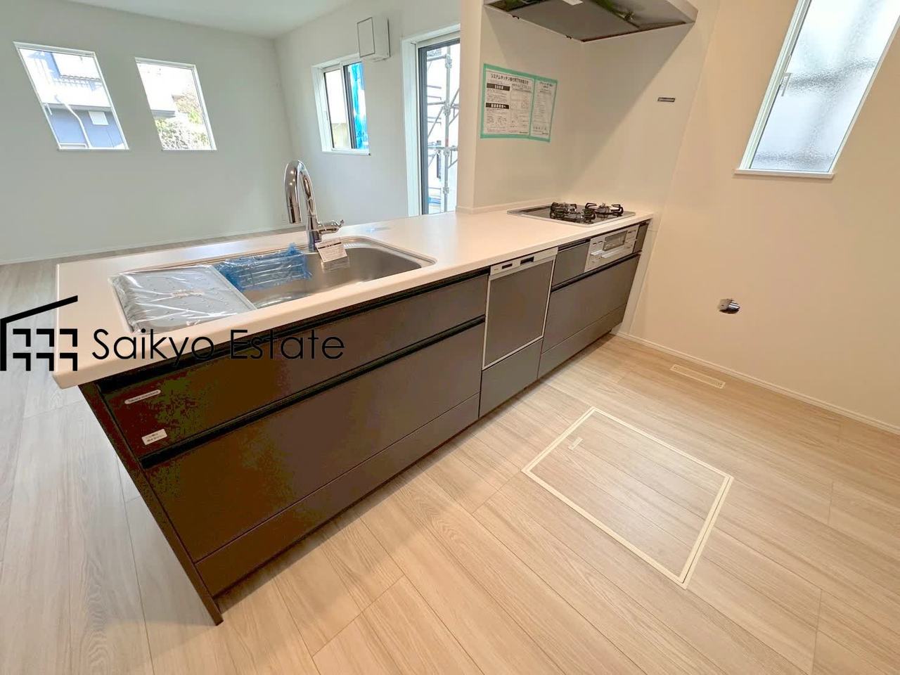 【施工例】リビングにいる家族とコミュニケーションをとりながら作業が出来る人気のカウンターキッチン。お子様がリビングにいても目が届くので安心です。