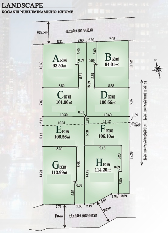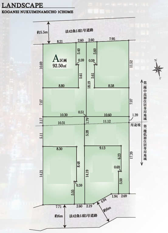 A号地 小金井市貫井南町1丁目 建築条件なし売地 全8区画