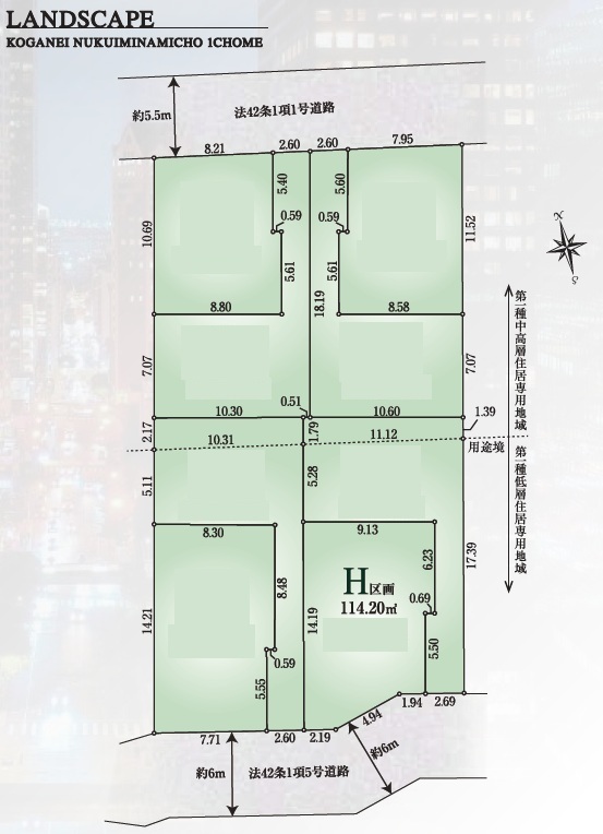 H号地 小金井市貫井南町1丁目 建築条件なし売地 全8区画