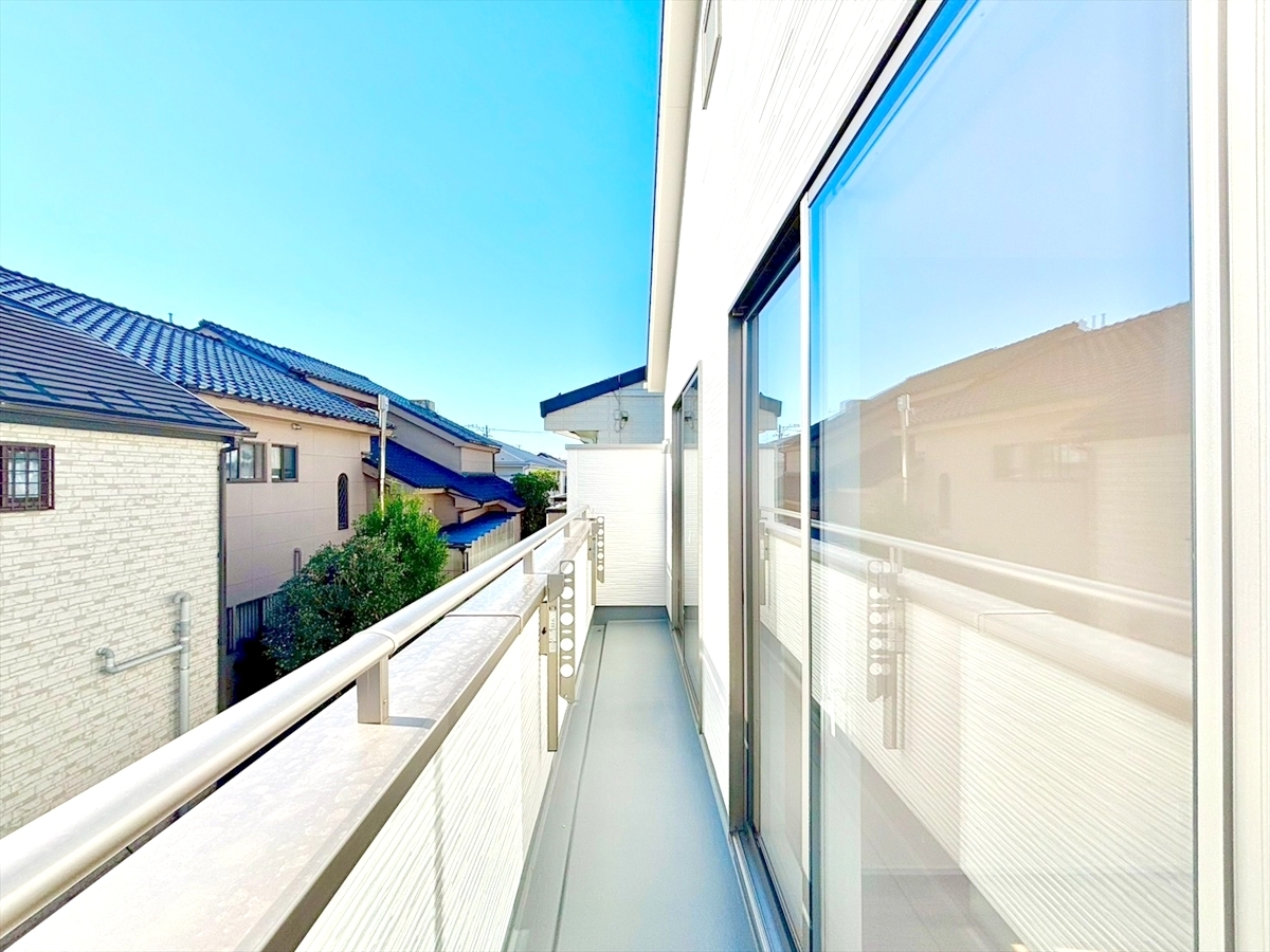 南向きワイドバルコニー!洋室2部屋分に面しているので、お布団干しにも大変便利ですね!■多摩市一ノ宮4 新築一戸建て■