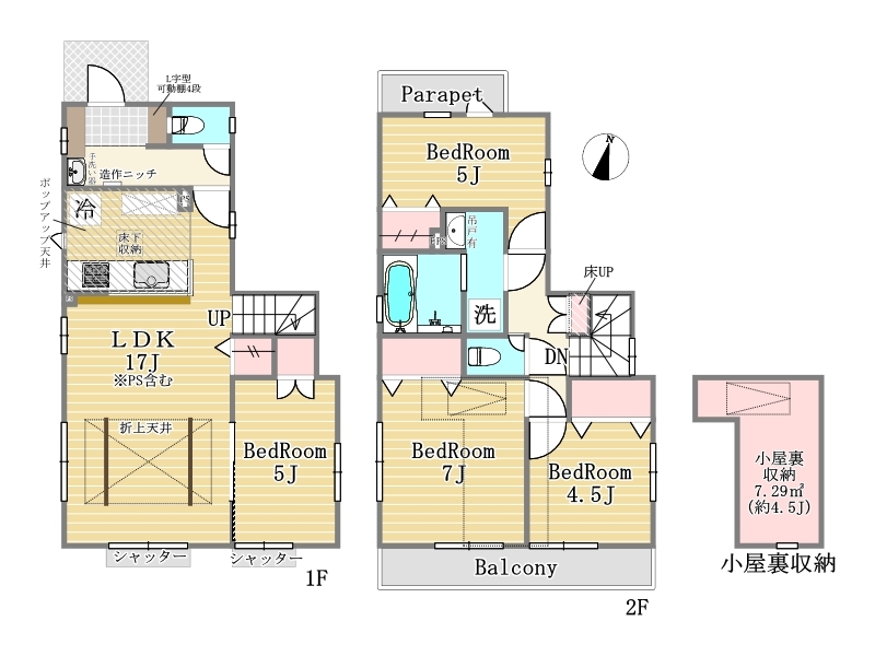POINT3. 1階リビング17帖に隣接する5帖居室&2階 4.5~7帖居室の大型4LDK