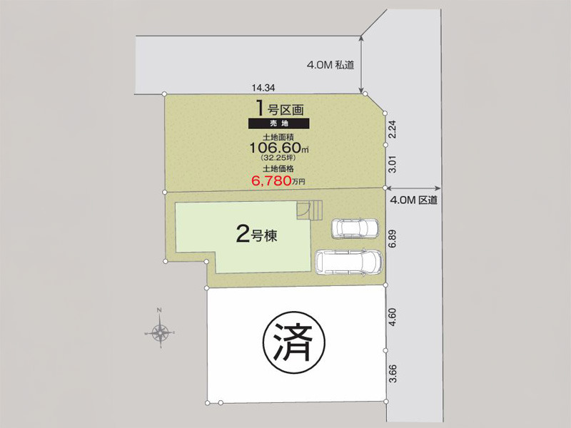 | 権利種類 | 所有権 | 接道 | 東側4M道路に接道 |