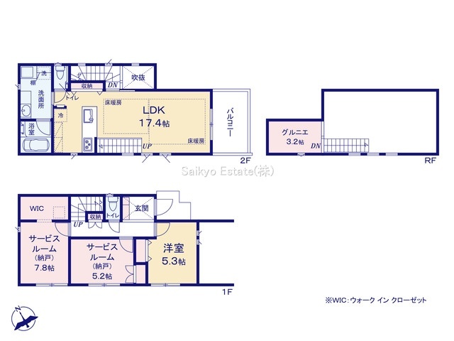 | 間取 | 1LDK+2S (LDK17.4帖、洋室5.3帖、S7.8帖、S5.2帖) | ||