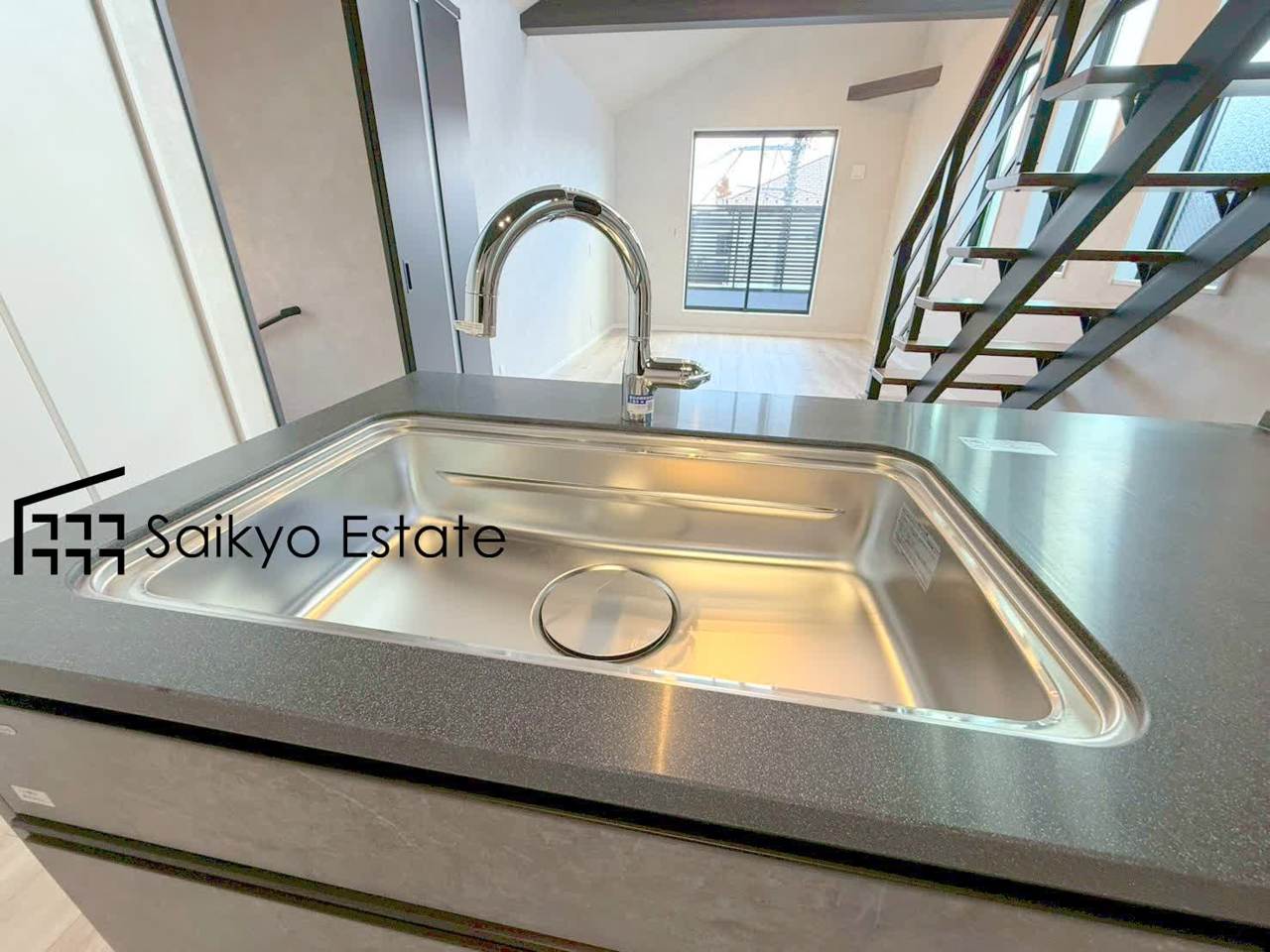 リビングにいる家族とコミュニケーションをとりながら作業が出来る人気のカウンターキッチン。お子様がリビングにいても目が届くので安心です。