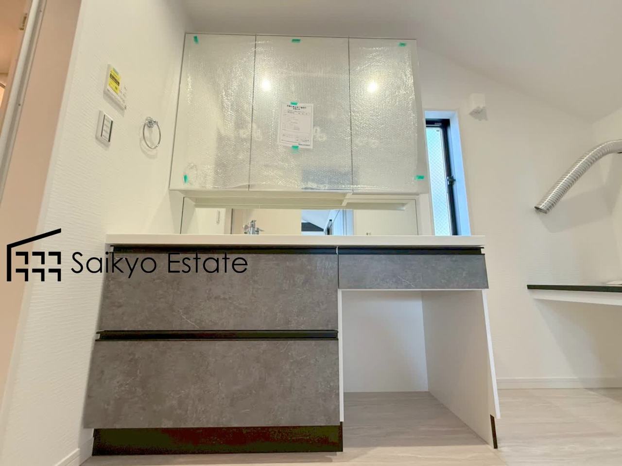 三面鏡付きの洗面化粧台を完備。収納スペースも十分ございますので、ドライヤーなどすっきりと片付きます♪