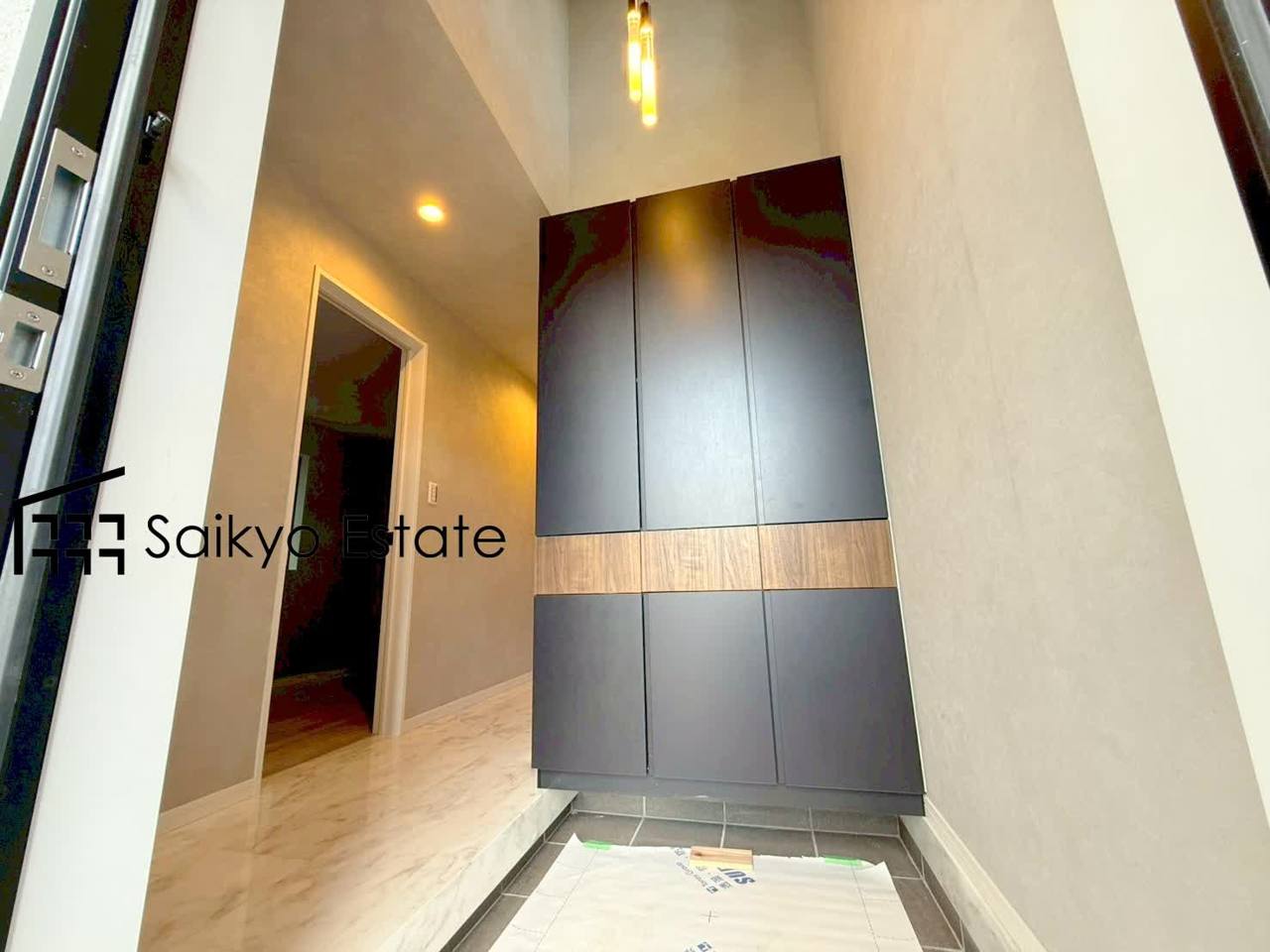 玄関上部は吹き抜けのため、陽光が差し込み、明るく開放感のある空間となっております。