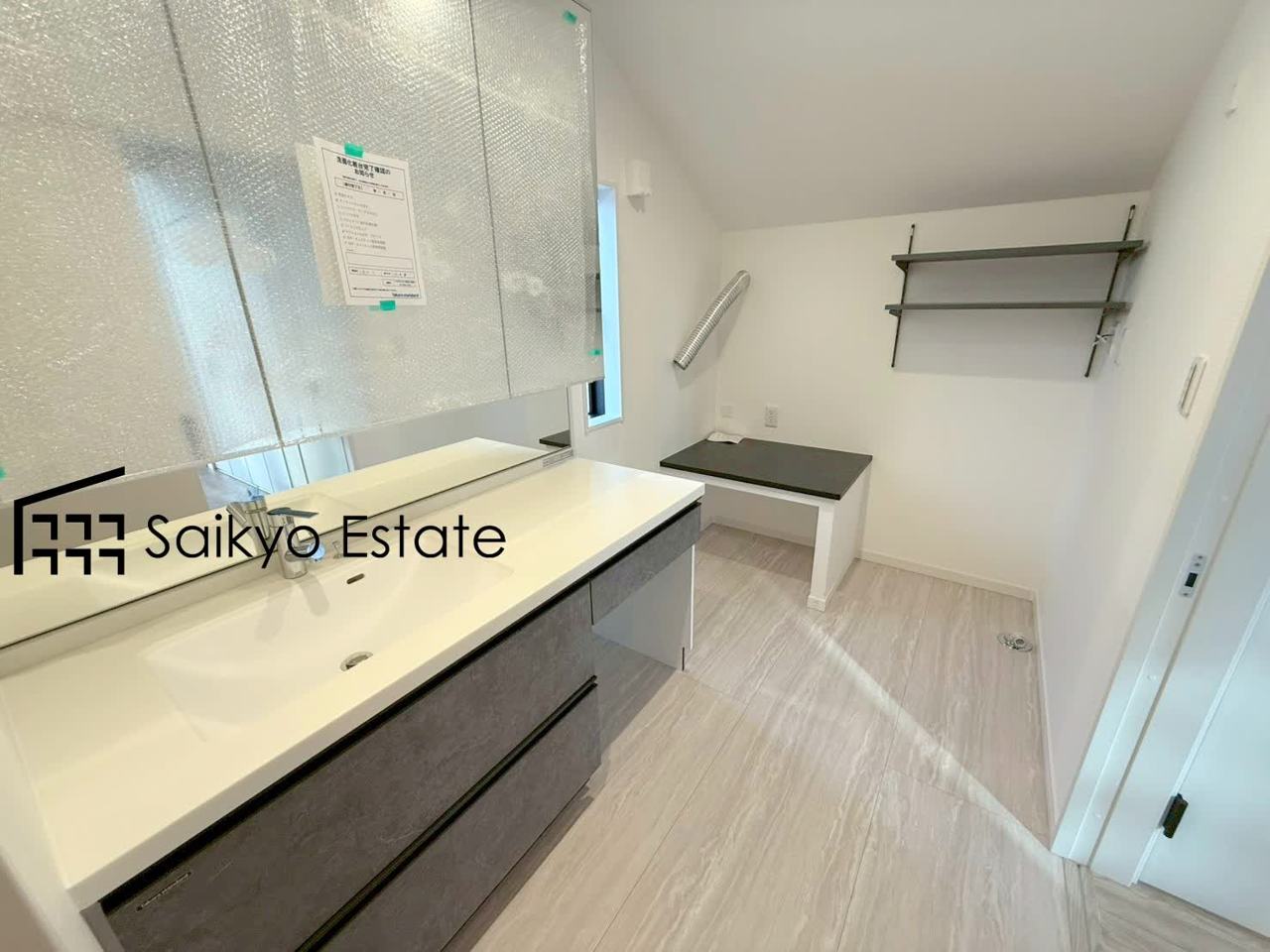 広くて使い勝手の良い洗面脱衣室。入浴時や洗面台の使用時、洗濯の際にも作業がしやすく快適な空間です。
