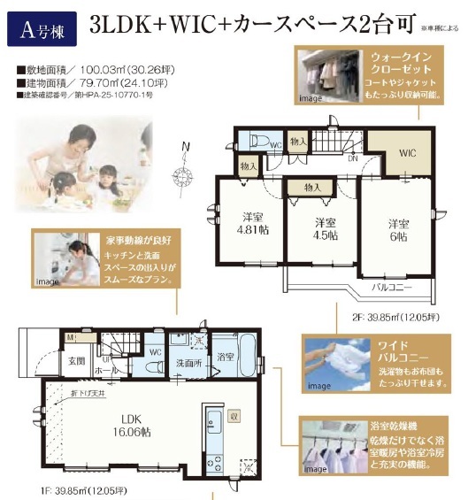 | 間取 | 3LDK+WIC (LDK16.06帖、洋室6帖、洋室4.81帖、洋室4.5帖) | ||