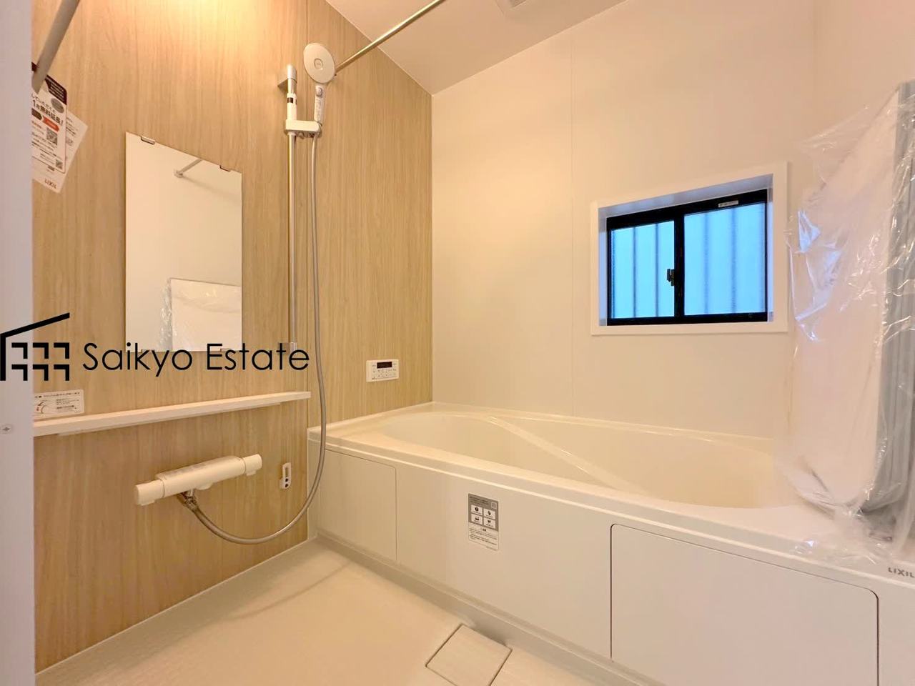 【施工例】一日の疲れを癒してくれる一坪タイプの広々バスルーム♪雨の日のお洗濯にも大活躍な浴室暖房乾燥機付きです!窓があって換気が出来るのも嬉しいですね♪