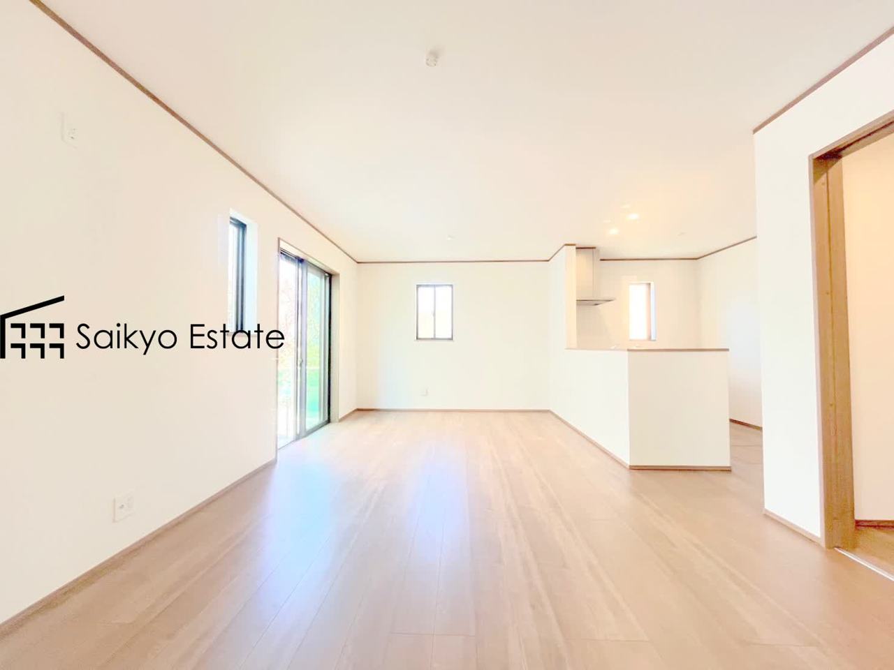 【施工例】広々としたLDKは家具の配置など楽しめます!ダイニングテーブルとソファーを置いても余裕の広さです!