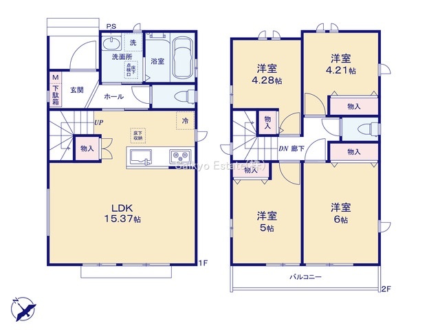 | 間取 | 4LDK+パントリー (LDK15.37帖、洋室6帖、洋室5帖、洋室4.28帖、洋室4.21帖) | ||
