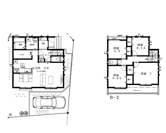 | 間取 | 4LDK+パントリー (LDK20帖、洋室7帖、洋室5.25帖、洋室4.5帖、洋室4.12帖) | ||