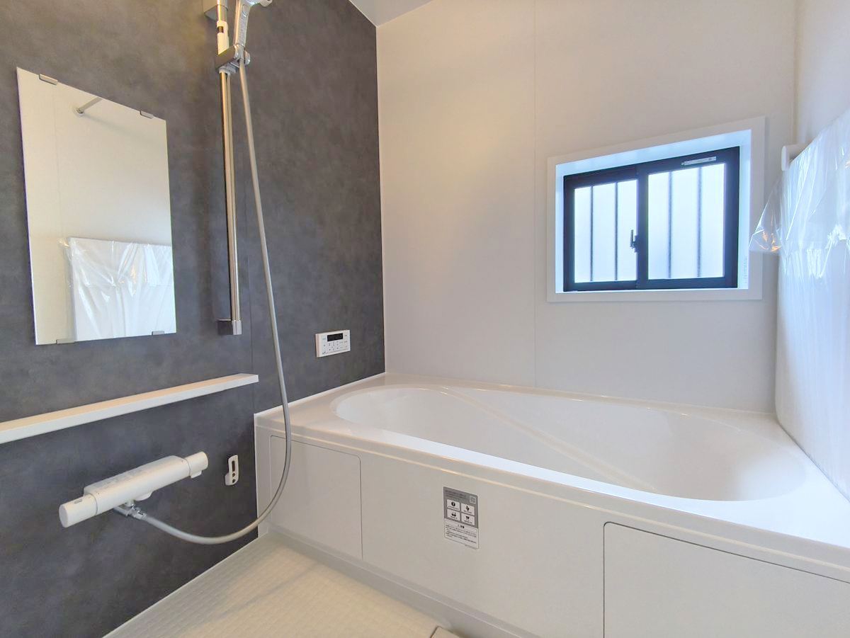 ゆったりと足を伸ばせる一坪タイプの浴室です。浴室換気乾燥機付きですので、カビの発生も抑制出来ます。 ■府中市日新町5 新築一戸建て■
