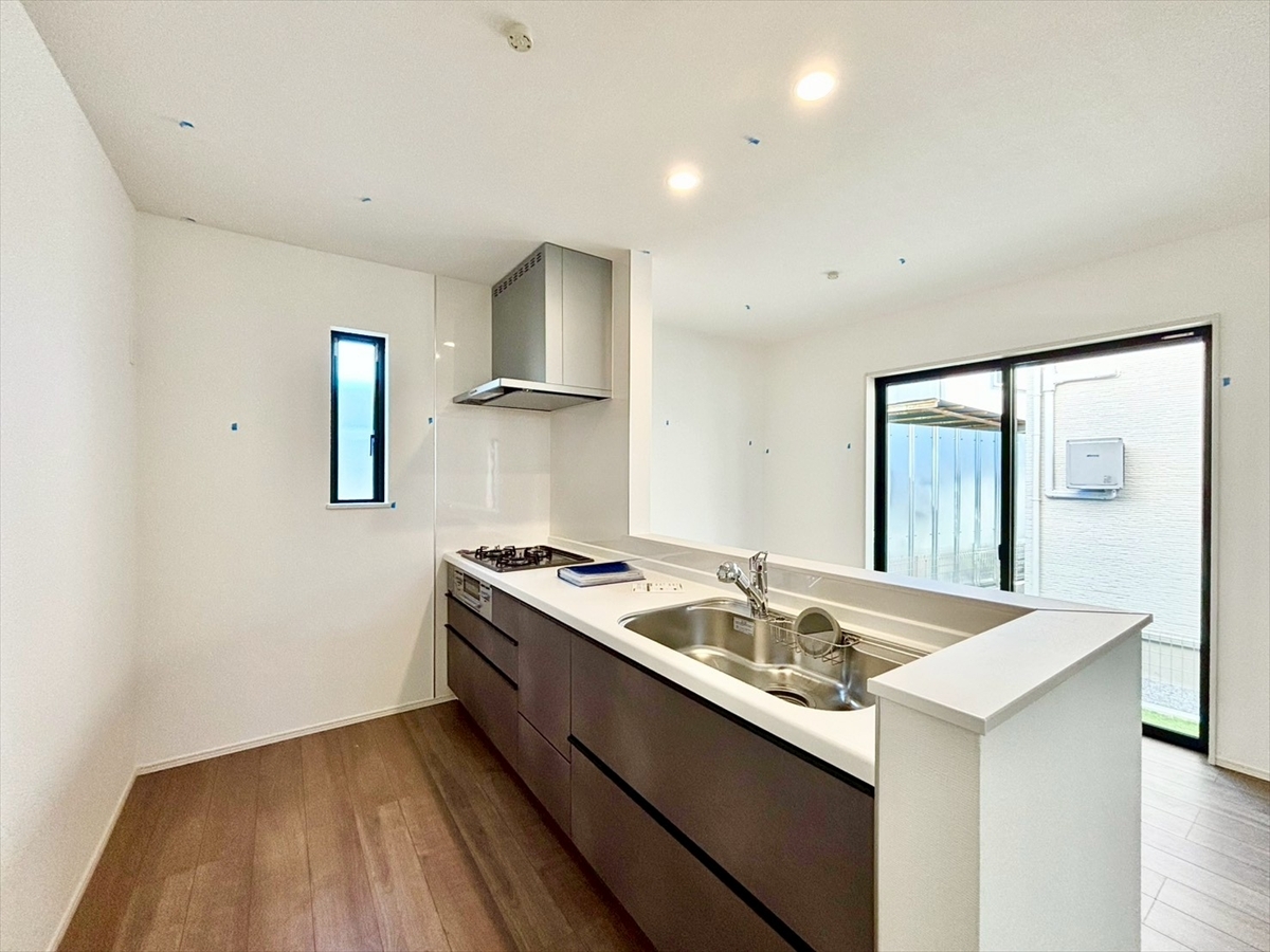 対面キッチなのでリビングにいる家族の様子がうかがえるので小さなお子様がいても安心ですね。 ■府中市日新町5 新築一戸建て■