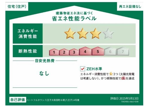 | 省エネ性能表示 | エネルギー消費性能:★★★ 断熱性能:5段階 |