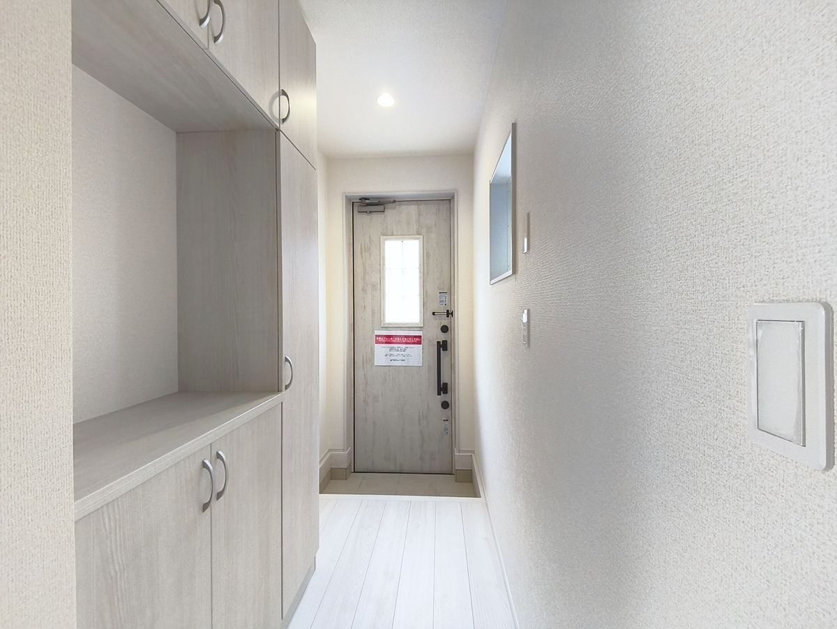 玄関は清潔感のある空間にしたいもの。ご家族が多いご家庭にはとても便利なたっぷり収納できるシューズボックス付きです。 ■立川市上砂町3 新築一戸建て■